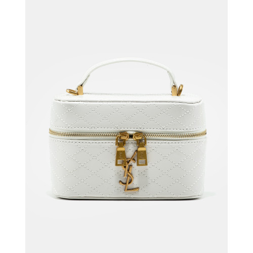 Брендовая женская сумка Saint Laurent Gaby Vanity Lacquered Leather White