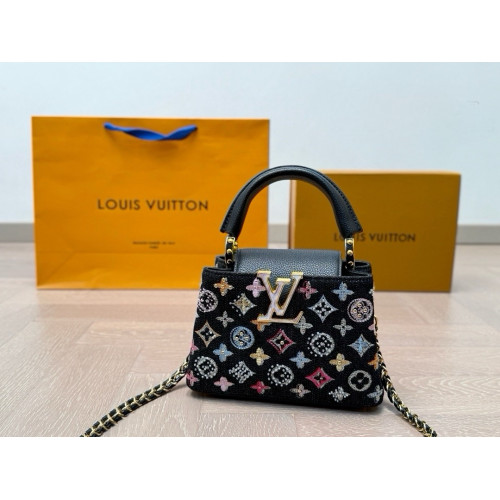 Купить женскую сумку Louis Vuitton Capucines BB Black Multicolor Embroidered Monogram ✔ Брендовая сумка Луи Витон из денима и кожи ✔ Стильный и современный дизайн ✔ Доставка по Украине. Заказывайте сумку Louis Vuitton онлайн!