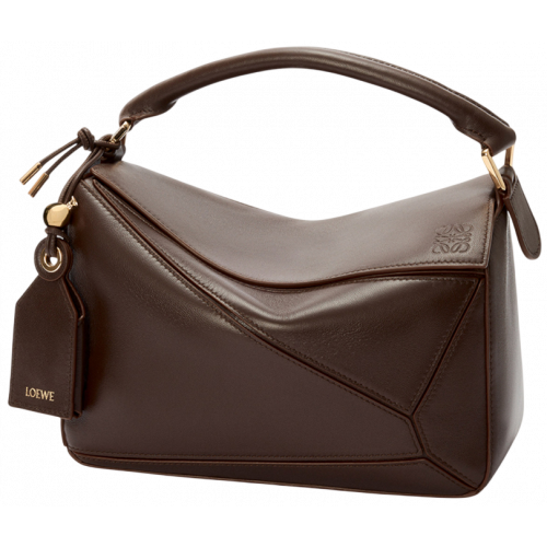 Брендовая женская сумка Loewe Small Featherlight Puzzle Bag in Nappa Lambskin Dark Chestnut