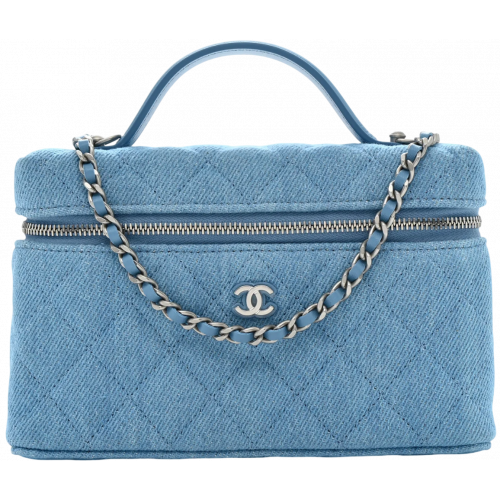 Chanel CC Top Handle Long Vanity Denim - стильная женская сумка в формате вейнити, выполненная из прочного денима и дополненная фирменной фурнитурой Double C. Благодаря удобной верхней ручке и длинному ремешку модель можно носить в руке, на плече или как кросбоде. Сумка сочетает в себе практичность и люксовый дизайн, вмещает необходимые вещи и подходит как для ежедневных образов, так и для путешествий. Элегантная форма и премиум материалы делают ее must-have аксессуаром в гардеробе современной женщины.