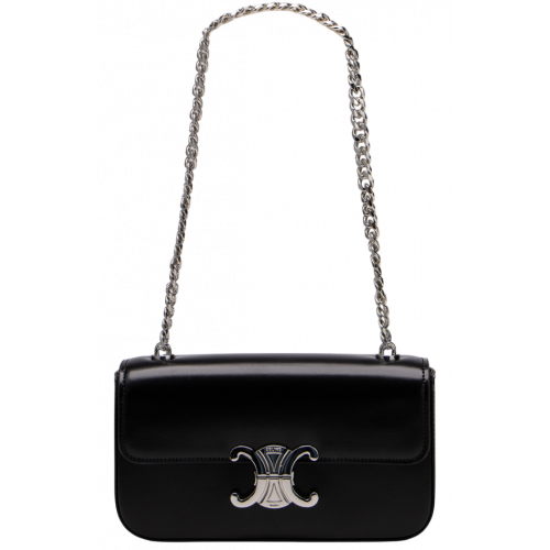 Брендовая женская сумка Celine Chain Claude In Shiny Calfskin Black/Silver