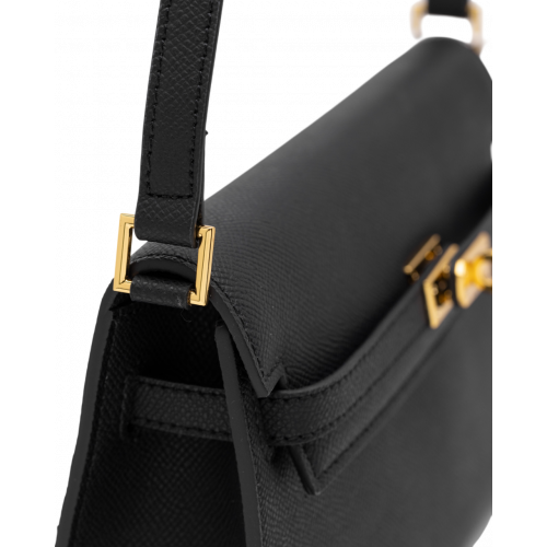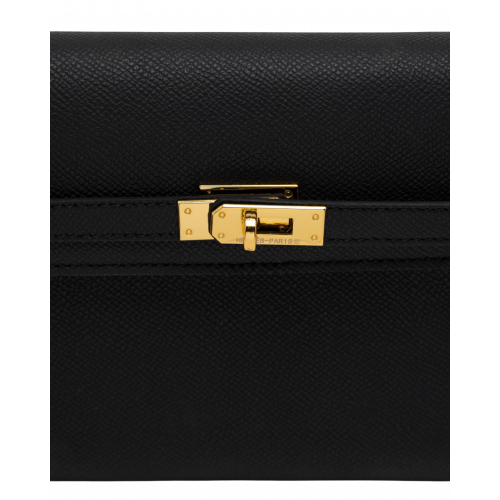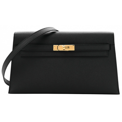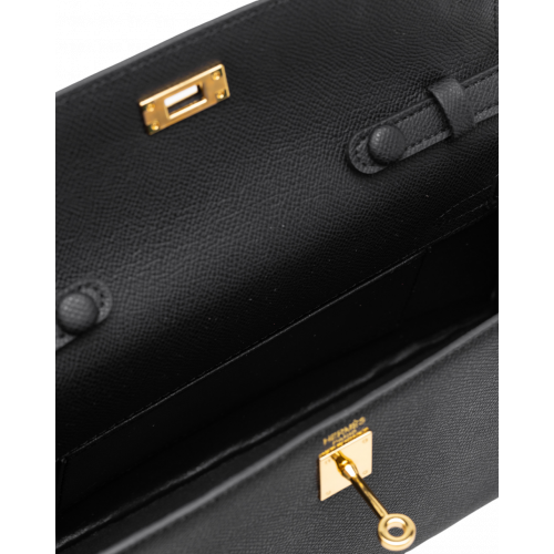 Брендовая женская сумка Hermes Kelly Pochette Handbag in Black/Gold Hardware