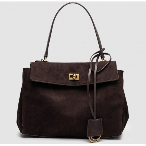 Брендовая женская сумка Balenciaga Rodeo Brown Suede/Gold