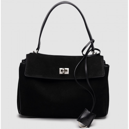 Брендовая женская сумка Balenciaga Rodeo Large Suede Black/Silver