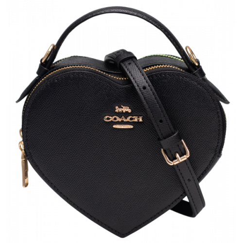 Брендовая женская сумка Coach Valentine's Black Crossgrain Leather Heart Crossbody Bag
