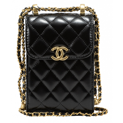Стильная и элегантная сумка Chanel Mini Flap Phone Holder - это must-have аксессуар для каждой модницы. Изготовлена в классическом черном цвете со стеганой эко-кожей, сумка дополнена золотистой цепочкой и культовой застежкой с логотипом Сhanel.