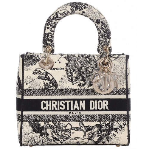 Брендовая женская сумка Dior Medium Lady D-Lite Bag Ivory & Black Embroidered Toile de Jouy Zodiac