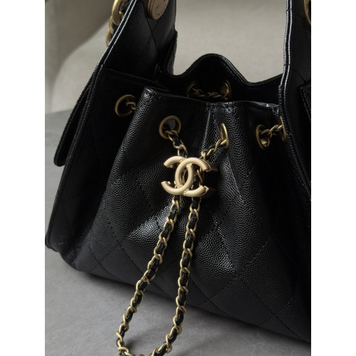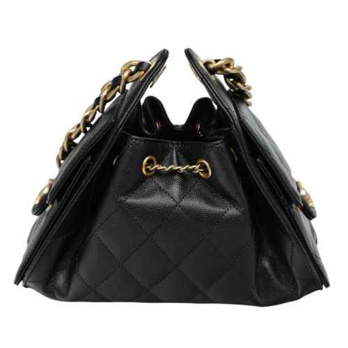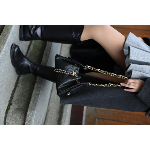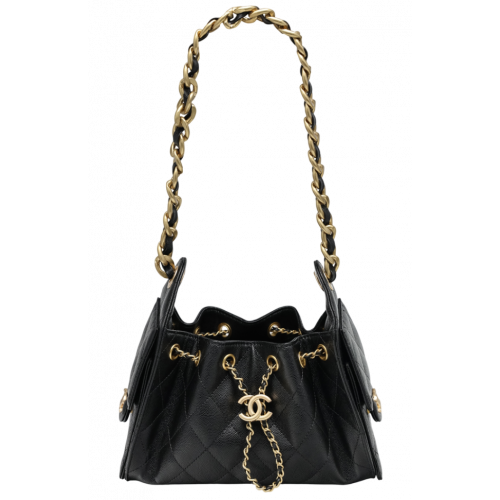 Брендовая женская сумка Chanel 25 Micro Handbag in Grained Calfskin Black/Gold
