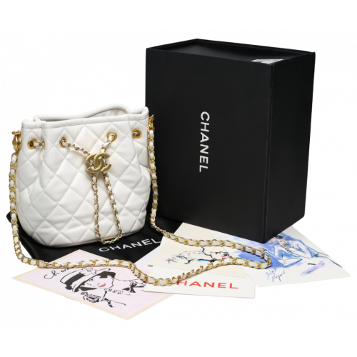 Брендовая женская сумка Chanel Button Bucket Crossbody Bag Lambskin White