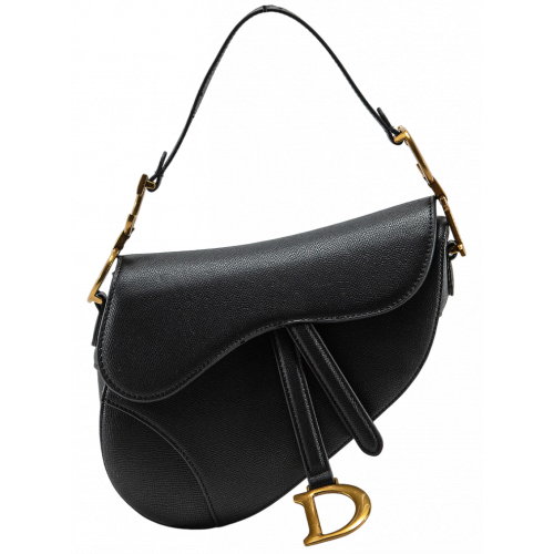 Брендовая женская сумка Dior Mini Saddle Bag with Strap Black Grained Calfskin
