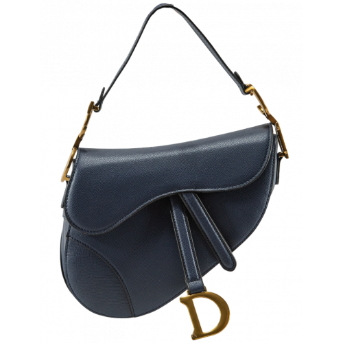 Брендовая женская сумка Dior Mini Saddle Bag with Strap Navy Blue Grained Calfskin