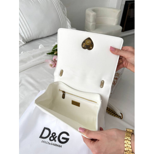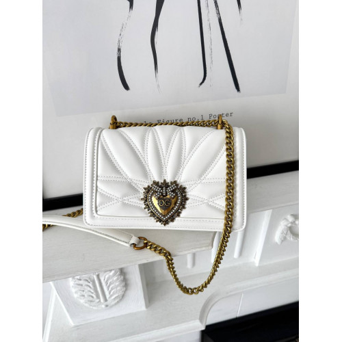 Брендовая женская сумка Dolce & Gabbana Devotion Medium Quilted Shoulder Bag White