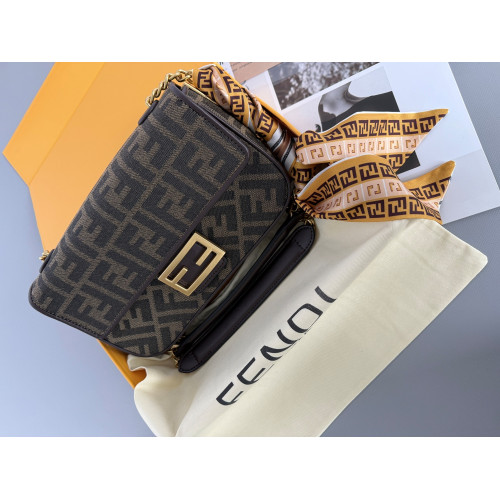 Брендовая женская сумка Fendi Baguette Bag in Brown FF Jacquard