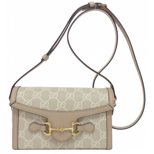 Брендовая женская сумка Gucci Horsebit 1955 Mini Bag Beige/White