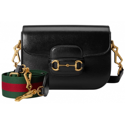 Брендовая женская сумка Gucci Horsebit 1955 Small Shoulder Bag in Black Leather