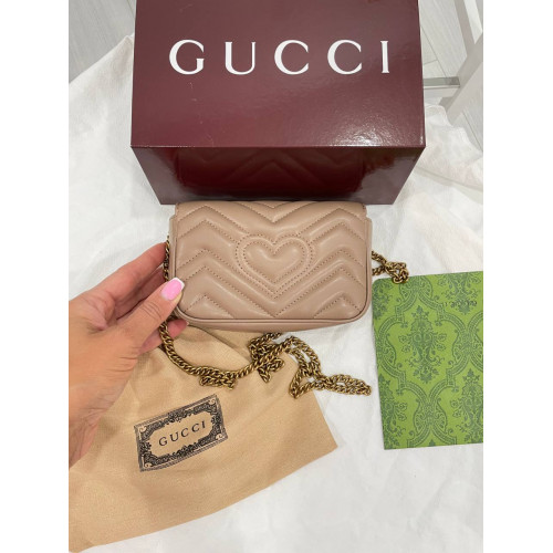 Брендовая женская сумка Gucci Marmont Super Mini Shoulder Bag Beige