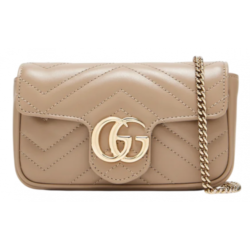Брендовая женская сумка Gucci Marmont Super Mini Bag - элегантная и компактная модель с культовым логотипом GG. Изготовлена из качественной кожи, просрочена. Внутри одно отделение, также есть карман с кожаной нашивкой. Подкладка в сумки из бархатного текстиля. Закрывается отделение на оригинальном механизме. Качественная фурнитура, металлическая и брендированная. Золотистая цепочка имеет фиксированную длину с кожаной ручкой, регулируется как для ношения в руке, так и через плечо. Стиль и роскошь в каждой детали. Идеально подходит для повседневных и вечерних образов.