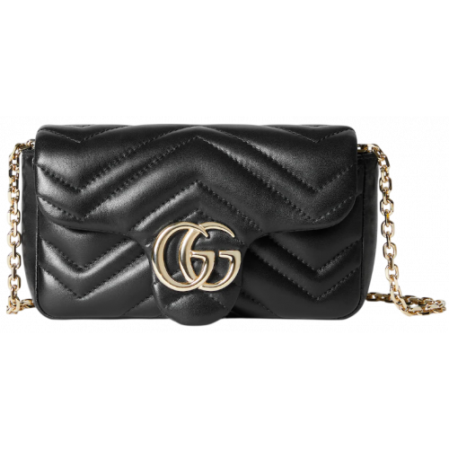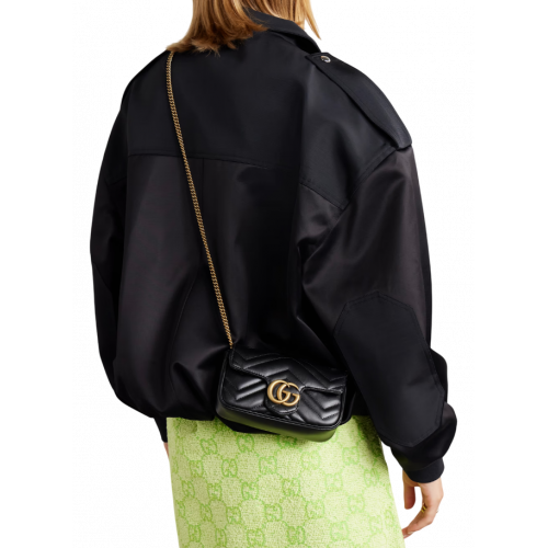 Брендовая женская сумка Gucci Marmont Super Mini Bag - элегантная и компактная модель с культовым логотипом GG. Изготовлена из качественной кожи, просрочена. Внутри одно отделение, также есть карман с кожаной нашивкой. Подкладка в сумки из бархатного текстиля. Закрывается отделение на оригинальном механизме. Качественная фурнитура, металлическая и брендированная. Золотистая цепочка имеет фиксированную длину с кожаной ручкой, регулируется как для ношения в руке, так и через плечо. Стиль и роскошь в каждой детали. Идеально подходит для повседневных и вечерних образов.