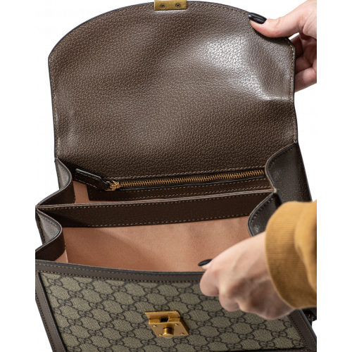 Стильная брендовая сумка Gucci Ophidia Medium Top Handle Bag сочетает фирменный винтажный дизайн, удобную верхнюю ручку и практичный размер для повседневного использования. Модель выполнена из качественных материалов, подчеркивает статус и смотрится элегантно в любых образах. Отличный выбор для тех, кто ценит люксовую классику и функциональность.