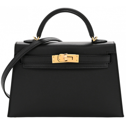 Брендовая женская сумка Hermes Mini Kelly 22 Black/Gold