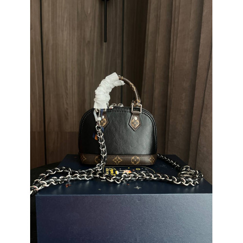 Брендовая женская сумка Louis Vuitton Nano Alma BB Monogram Black/Brown
