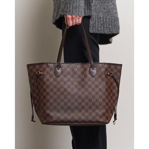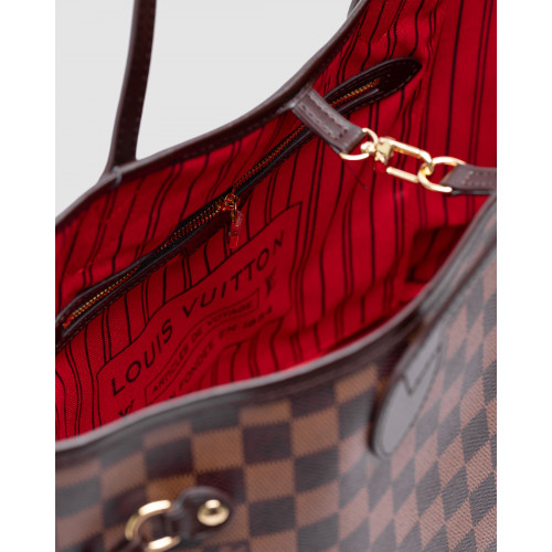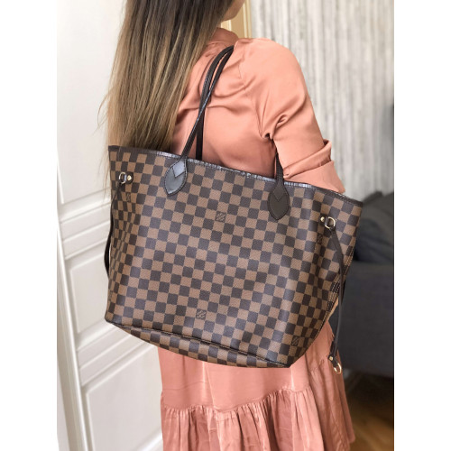 Брендовая женская сумка Louis Vuitton Neverfull MM Tote Bag in Damier Ebene Canvas Brown