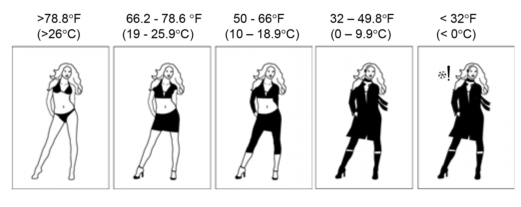 - Визуализация температурных показателей в виде иконок "Погодная девочка". В зависимости от температуры метеостанция отображает одну из иконок с изображением девочки одетой по погоде.