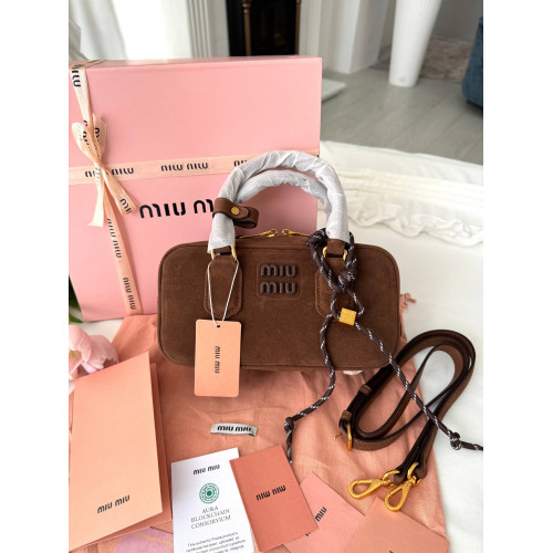 Брендовая женская сумка Miu Miu Arcadie Hobo Bag Suede Brown
