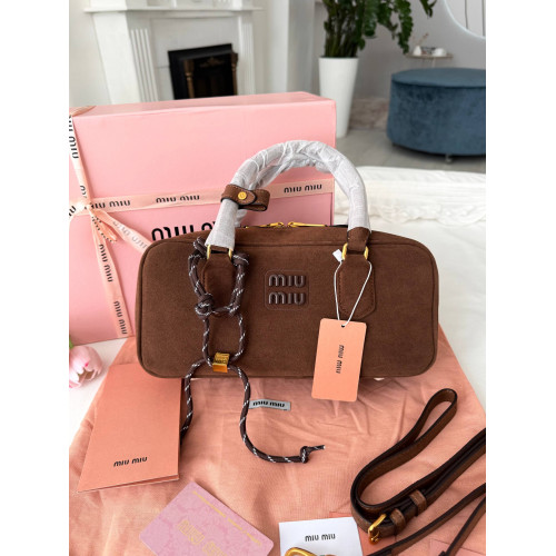 Брендовая женская сумка Miu Miu Arcadie Large Hobo Bag Suede Brown
