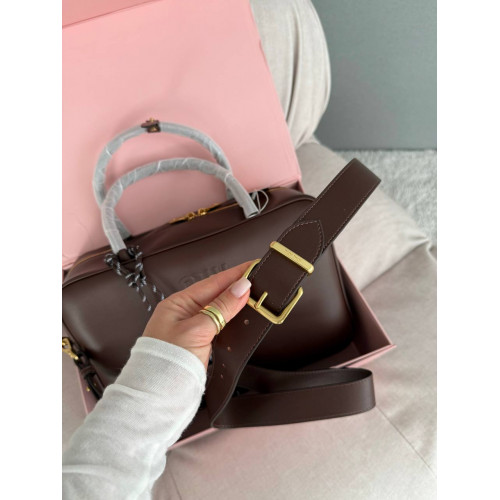 Брендовая женская сумка Miu Miu Beau Tote Bag in Chocolate Leather