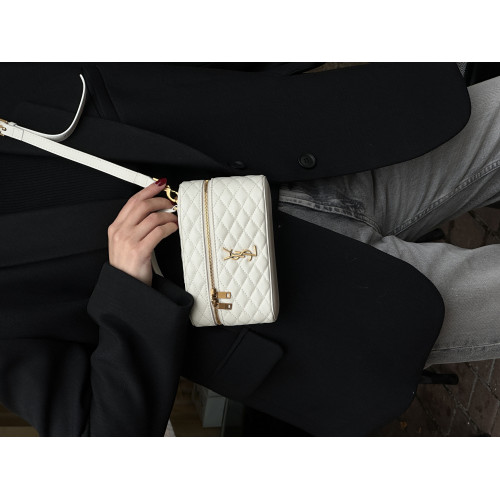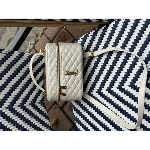 Брендовая женская сумка Saint Laurent Gaby Vanity Bag in Leather Cream