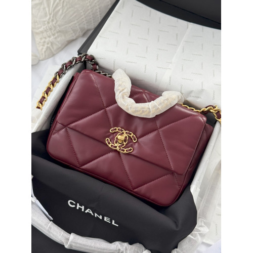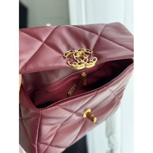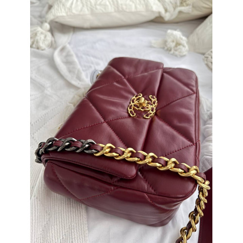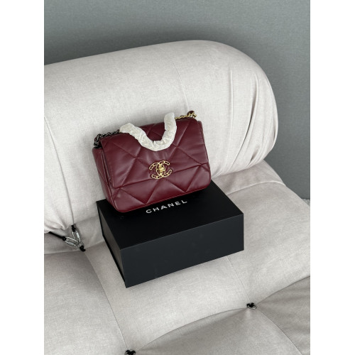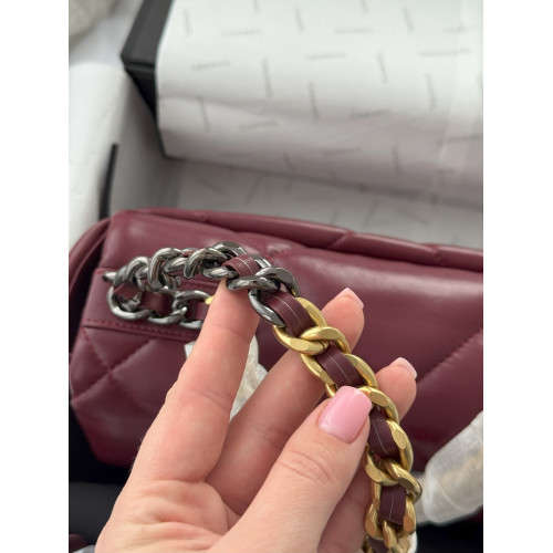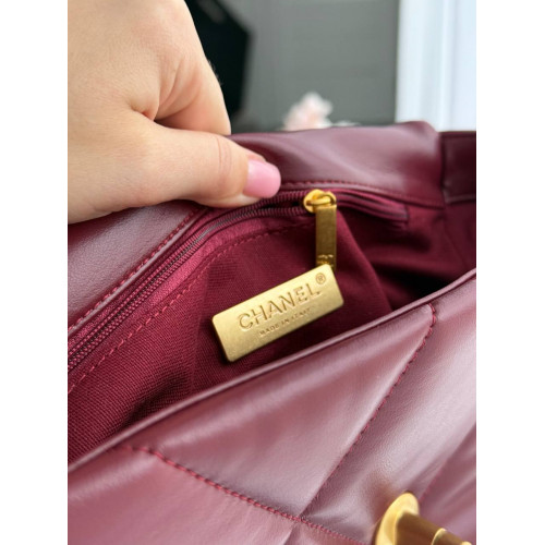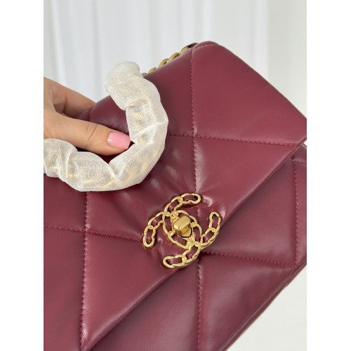 Брендовая женская сумка Chanel 19 Flap Bag Burgundy Gold/Silver